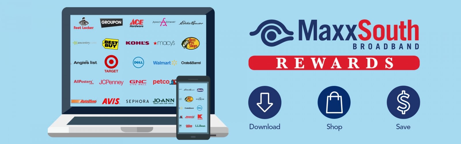 MaxxSouth Broadband has developed an exclusive rewards program for MaxxSouth customers who choose to shop online. As a MaxxSouth Broadband Rewards member, when you make an online purchase from one of the 4,000 participating merchants, a portion of the purchase is credited to your MaxxSouth bill. In order to receive credit you must be an active MaxxSouth customer at time of payout.